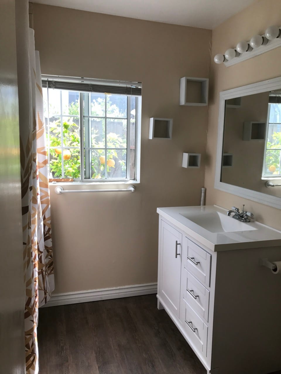 1 bathroom filled with natural light and elegant finishes